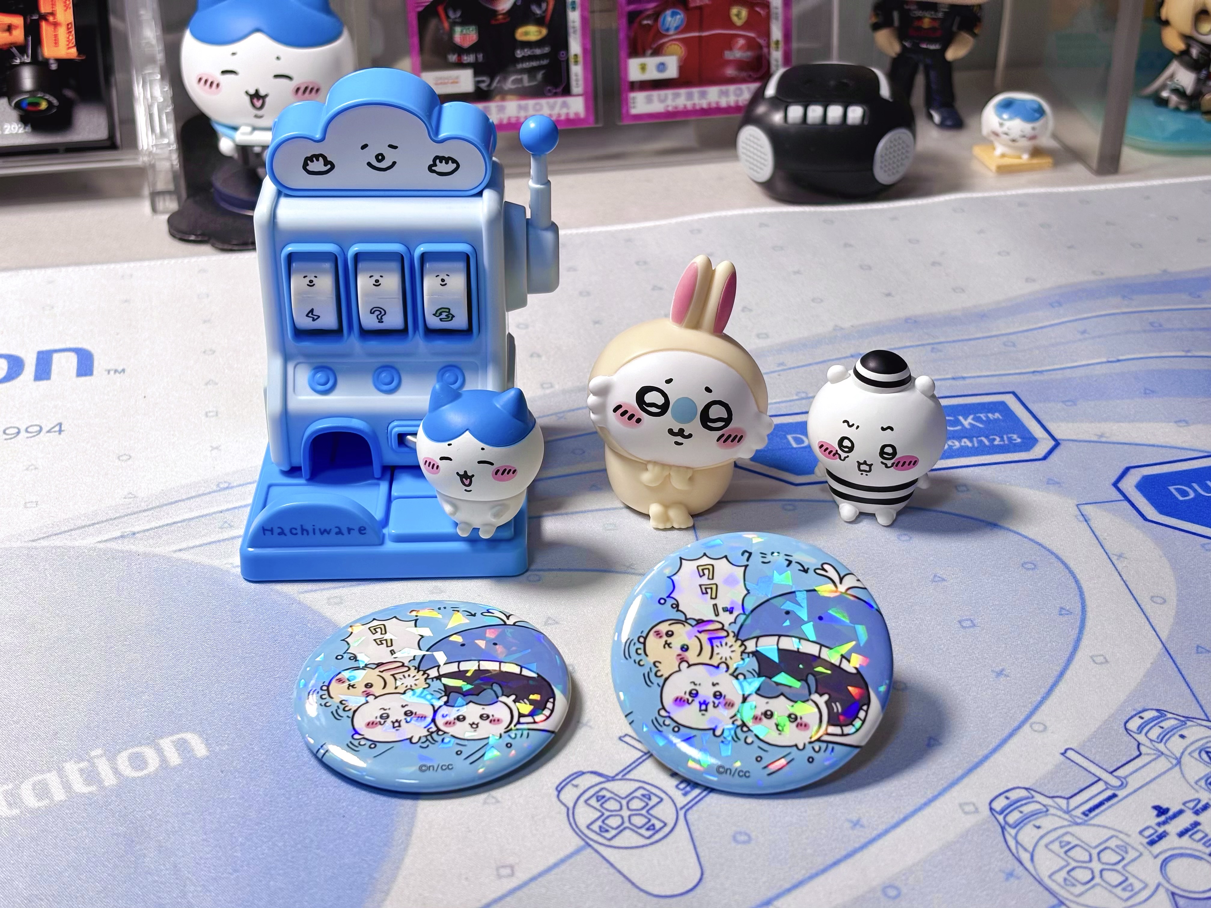 还逛了几个潮玩店,买了一些ckw小摆件。老虎机抽到了小八,成功!刚拆开这个飞鼠盒子的时候我看到的是背面,以为是乌萨奇然后一翻转发现还有反转。最右边的摆件抽到了我想要的监狱款,也很满意。