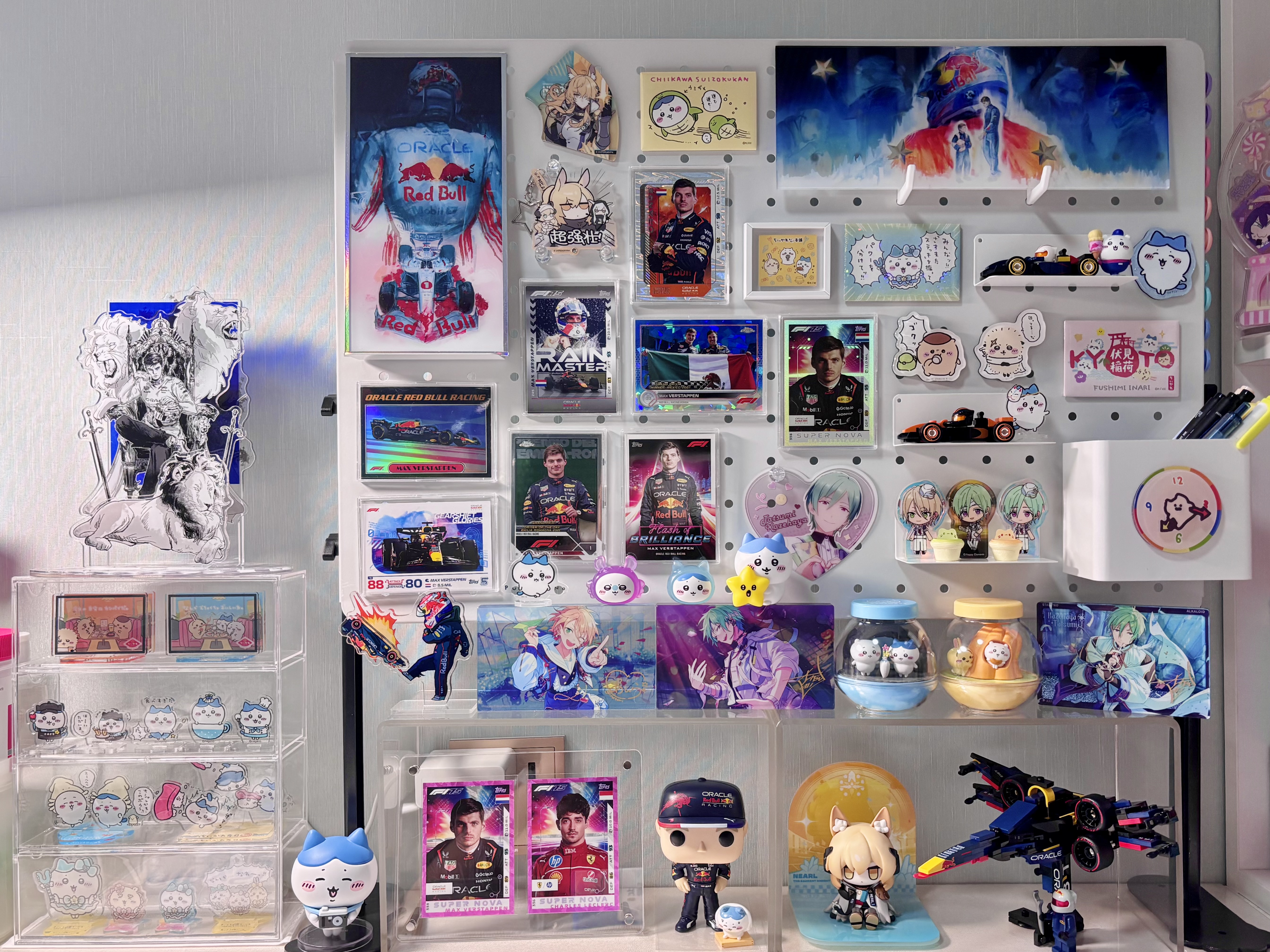月初完成的一项壮举——布置完了桌面洞洞板!买的是40x60的板,开始布置之后觉得有点小不够放谷子,但是比划了一下40x80又太长了,会显得视觉上有点压抑。于是对小纸片子进行了一番精挑细选。