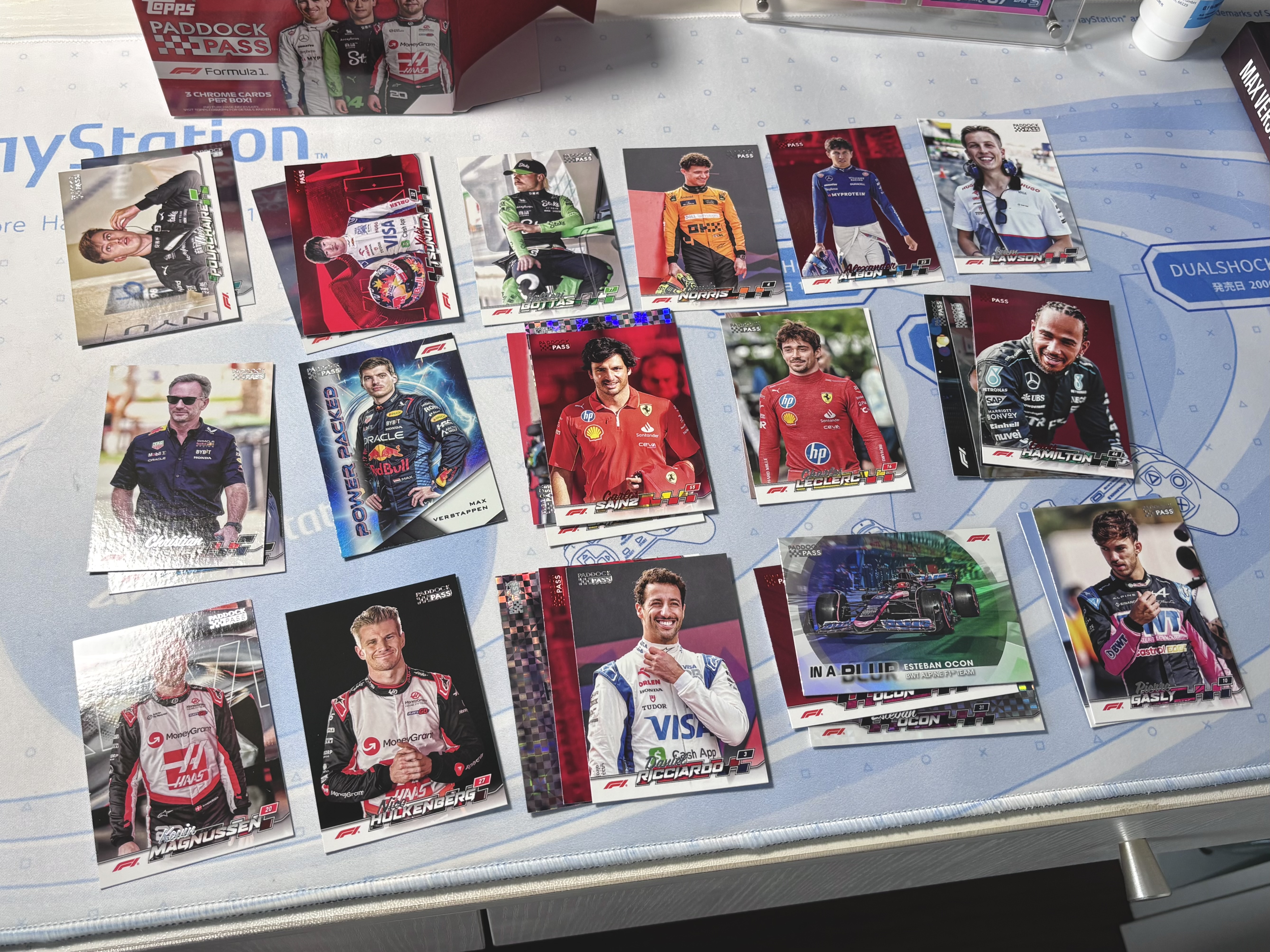之前已经零零散散地收了一些潘子的卡,然而上班上得还是想买个小盒拆卡过过手瘾。于是花145买了一盒24年的Paddock Pass,刚好也没单收过这个系列的卡。第一包开出了潘子的power packed特卡,开心,虽然这张是这盒里唯一的潘子(。我也不知道这盒的价格算不算捡漏啊,买完没多久这家就下架了,过了一段时间后再上架就要200左右了,看了下其他店和闲鱼的价格差不多也在180到200的样子。总之,见过便宜的所以不打算再买Paddock Pass了,而且它的选图我也没有特别喜欢的。