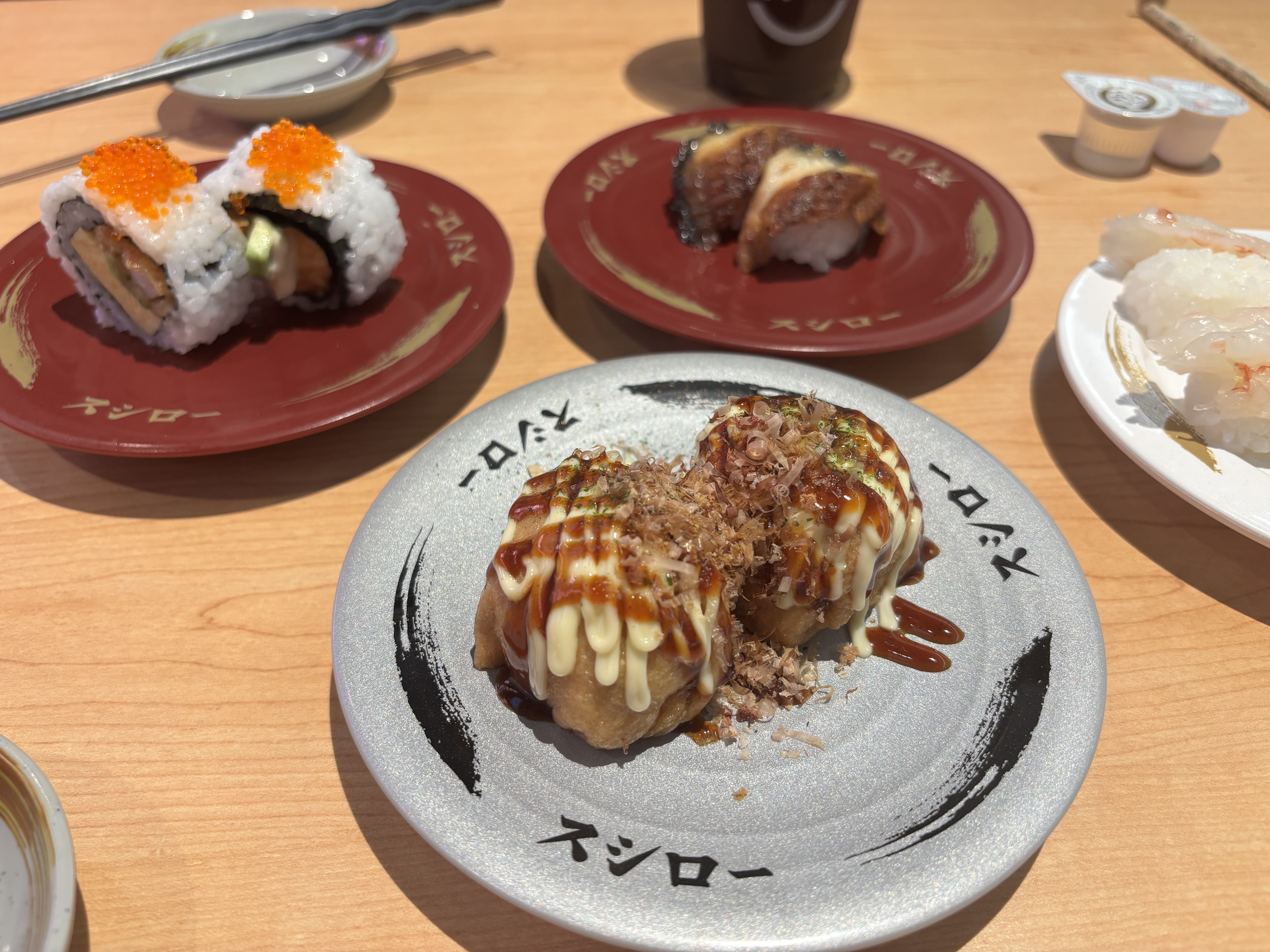 这个章鱼烧风味腐皮寿司吃起来好像大饭团,一口都是饭……