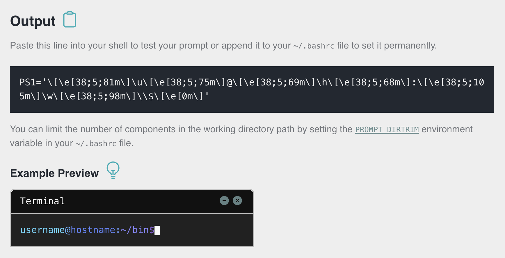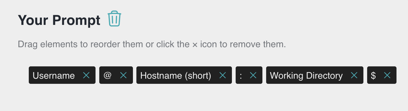Prompt模版生成:拖拽username、hostname、working directory等元素以及各种符号来生成模版。